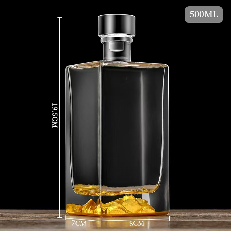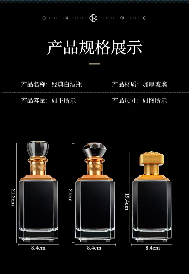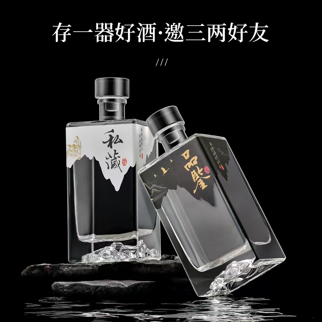 晶白酒瓶采用高透明度水晶玻璃材质,质地坚硬、折射率高,呈现出晶莹剔透的视觉效果。其原料中二氧化硅含量高,经1600℃高温熔炼成型,具备优良的密封性与避光性,能有效保护酒体,提升陈藏价值。瓶身设计典雅,常用于中高端白酒包装,兼具实用与收藏价值。